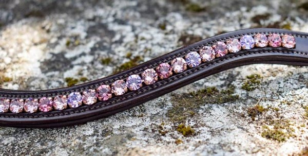 Weich unterlegter Stirnriemen mit einem wunderschönen Farbverlauf aus altrosa und lila, rosegoldfarben gefasst, #perfectmatch mit Anemone von Equestrian Stockholm