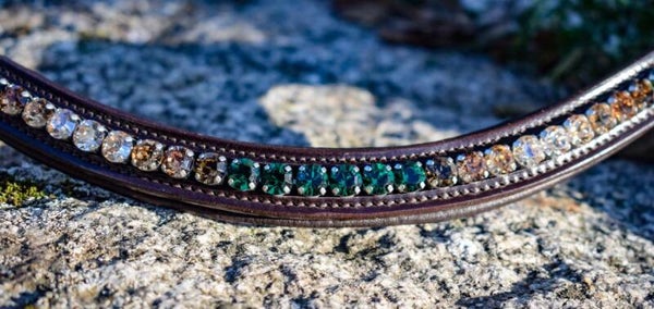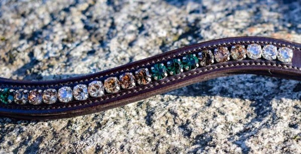 Weich unterlegter Stirnriemen mit einem Farbverlauf passend zu den New Forest Pony Farben, silberfarben gefasst