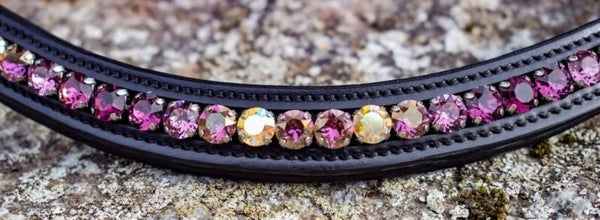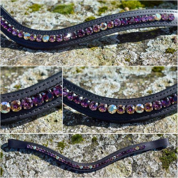 Weich unterlegter Stirnriemen mit einem einzigartigen Farbverlauf aus Rotviolett und Strass mit Regenbogeneffekt, silberfarben gefasst, #perfectmatch zu fast allen Rotviolett Tönen ;)