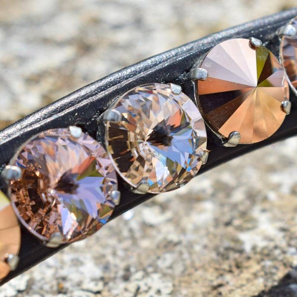 Geschmeidig unterlegter Slim Line Stirnriemen mit silberfarben gefassten XXL Glas-Kristallen (14mm Rivoli) - 100% Handmade in Germany