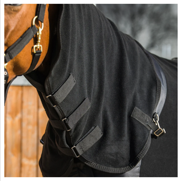Eine wunderbare Abschwitzdecke aus feinem, hochwertigem Fleece, jetzt mit D-Ringen zum Anbringen eines Halsstücks. Die Decke ist sehr beliebt und mit einem schicken champagnerfarbenen Logo versehen. Diese besonders atmungsaktive Decke besteht aus einem Fleece aus Polyester und einer Innenseite aus Polypropylen mit eingeschmolzenen Keramikpartikeln. Die Fleecedecke Supreme ist ideal für den Einsatz vor und nach dem Training oder beim Transport. Da sie atmungsaktiv ist, eignet sie sich sehr gut um das Pferd an kalten Tagen, insbesondere nach der Arbeit, warm zu halten. Auch an wärmeren Tagen kann die Decke zum Aufwärmen oder Abschwitzen verwendet werden. Sie ist mit abnehmbaren Kreuzgurten, einem Schweiflatz und einem Schweifreimen ausgestattet.