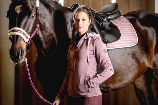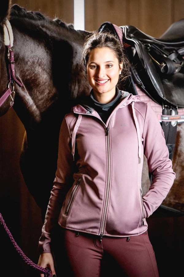 Wärmende gebondete Damen Funktionsjacke | innen weich angerauht | dezenter Flockdruck mit Strass an der Kapuze | Kapuze innen mit gestepptem Nylon | Kapuze ist mit einem Druckknopf feststellbar | dekorative Ziernähte im Vorder- und Rückenteil | taillierte Form | Reißverschlusstaschen mit Logo Zipper | dekorativer Flockdruck mit Strass am rechten Ärmel | Ärmelsaum und Saum mit elastischem Einfass | Logo Rubber Badge auf dem linken Ärmel