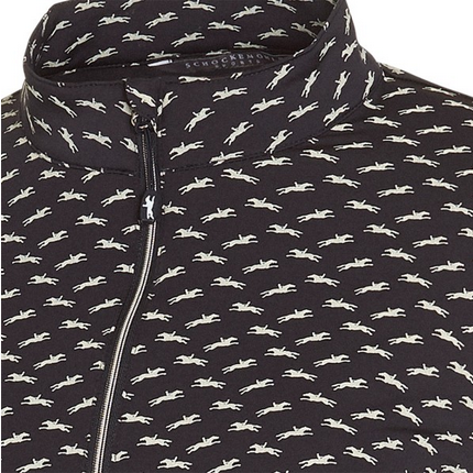 Das taillierte Damen Funktionsshirt Luciana Style ist modisch bedruckt. Das Material trocknet schnell, hat einen integrierten UV-Schutz und ist atmungsaktiv. Der Reißverschluss im Vorderteil ist mit einem Logo Pferde-Anhänger dekoriert.