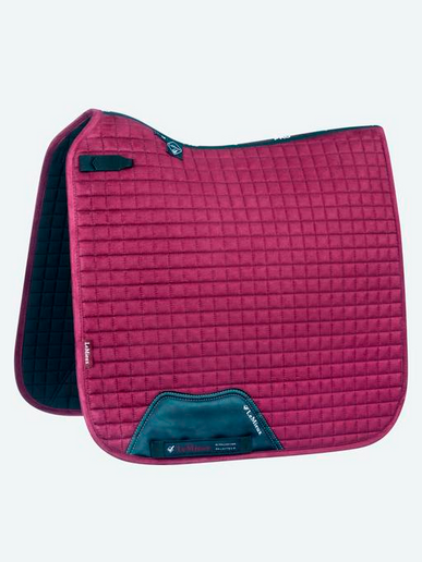Mit der neuen super weichen Einfassung aus Wildleder setzt dieses Dressurpad neue Maßstäbe in Bezug auf Stil und Komfort. In Kombintion mit den passenden Polo-Bandagen und Fliegenmützen hat sich der LeMieux als Kult etabliert, steht den meisten Pferden und trifft die meisten Geschmäcker. Entwickelt für eine breite Palette an Dressur-Sätteln mit seinen hochelastischen D-Ring-Befestigungen und dem markanten Gurtschutz-Bereich. Die luxuriöse Oberfläsche aus Wildleder und die passende Einfassung aus superweichem Wildleder wird durch ein zartes Bambus-Futter ergänzt, das Schweiß unter dem Sattel absorbiert und kontrolliert.