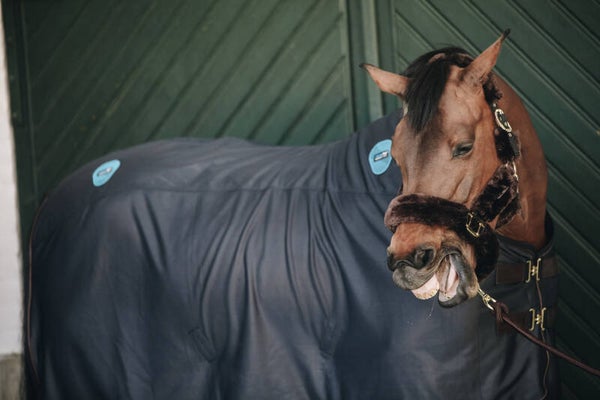 Eines der ersten Produkte im Kentucky Horsewear-Sortiment waren die Magnetic Stable Boots Recuptex. Da es sich um ein sehr erfolgreiches Produkt mit sehr hoher Kundenzufriedenheit handelt, haben wir uns dazu entschieden, auch eine Magnetic Rug Recuptex Deke zu entwickeln. Auch diese verwendet die gleiche Recuptex-Stofftechnologie, die sich als Stand der Technik erwiesen hat. Sie enthält feinstes, auf der Bekaert BEKINOX®-Technologie basierendes Inox-Garn (mit Fasern aus Edelstahl), das in den Stoff eingewebt wird. Dadurch entsteht ein Faraday-Käfig, der die im Körper des Pferdes erzeugten Magnetfelder reflektiert. Die Erhaltung dieser Felder fördert die Durchblutung und den Sauerstofffluss. Darüber hinaus beschleunigt es auch den Prozess der Erholung in einer geschützten, natürlichen Art und Weise. Die Decke besteht aus einem sehr starken Gewebe, das sowohl im Sommer als auch im Winter in Kombination mit anderen Decken verwendet werden kann. Es ist ideal, um die Muskeln des Pferdes vor und nach dem Reiten zu entspannen und kann auch über Nacht sehr gut auf dem Pferd gelassen werden. Wir empfehlen, die Decke zunächst eine Stunde zu verwenden und die Anzahl der Stunden an Nutzung beim Pferd in den folgenden Tagen schrittweise zu erhöhen, damit es sich an das Kribbeln gewöhnen kann, das entstehen kann. Maschinenwaschbar bei 30°, kein Trockner.