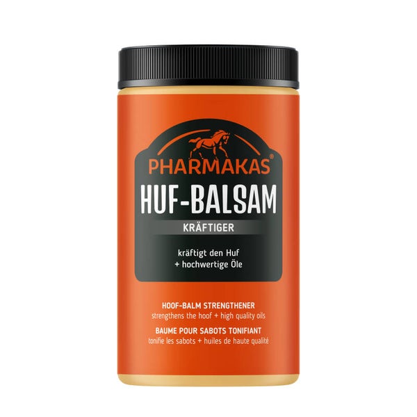 Pharmakas® Huf-Balsam Kräftiger verbessert das Hufwachstum und kräftigt das Hufhorn. Gleichzeitig pflegt es den Huf intensiv und hält ihn elastisch. Ausgewählte Öle und Wachse schützen vor spröden und trockenen Hufen. Die tägliche Hufpflege ist für einen dauerhaft gesunden Huf unerlässlich. Mit den pflegenden und kräftigenden Inhaltsstoffen unterstützt Pharmakas® Huf-Balsam Kräftiger die natürliche Beschaffenheit eines optimalen Hufs. Für alle Hufarten geeignet! Anwendung: Zur täglichen Pflege auf Hufhorn und Kronrand auftragen. Zur Anwendung als Kur auf den gesamten Huf auftragen und leicht einmassieren.