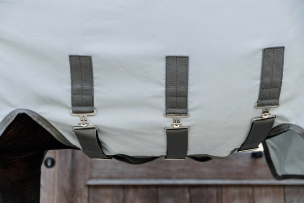 Der Stoff ist robust, atmungsaktiv und sehr weich, daher bietet diese Ekzemer-Decke Ihrem Pferd höchsten Tragekomfort. Durch ihre helle Farbe reflektiert die Decke die Sonnenstrahlen und absorbiert keine Wärme.