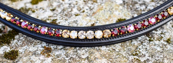 Weich unterlegter Stirnriemen mit Strass in bordeaux und braun, goldfarben gefasst, winw wunderschöne warme und elegante Kombination